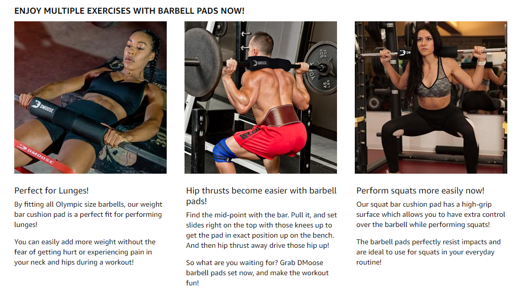 - High density rubber foam barbell padding which easily absorbs impacts.